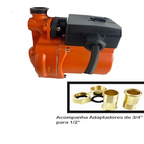 Ficha Técnica - Potência do motor: 120 W - Voltagem: 220V - Pressão máxima: 9 mca - Vazão máxima: 1.800 L/h - Recalque de sucção: 3/4" - Frequência: 60 Hz - Pontos de saída de água: 1 ponto - Temperatura máxima da água: 60 °C - Grau de Insulação: Tipo H