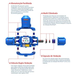 As Bombas SMART SE trazem inovações exclusivas, como a Troca de Cilindrada com múltiplas capacidades e a Cápsula de Vedação para uma manutenção facilitada.
