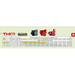 Bomba De Alta Vazão Thebe Thi-13 1,0cv Monofásico 127/220-254v Motor blindado IP55.Motobomba Centrífuga Monoestágio - Monobloco - Motor Monofásico ou Trifásico em II Polos, 60Hz, 3500rpm- Bocais com rosca BSP, Sucção 2.1/2 x Recalque 2.1/2.-utilizada para água limpa até temperatura de 70ºC Temperaturas superiores, consultar opções .OBS.: Este modelo possui característica construtiva bocais 2.1/2 x 2.1.2 para atender ao sistema de combate a incêndio, por este fato, o padrão de fornecimento é com a pintura na cor vermelho Munsell.- Carcaça em ferro fundido GG-20.- Rotor em ferro fundido GG-20.-anel O'ring de vedação da carcaça em Buna N. Selo mecânico:- Faces em grafite e cerâmica. Mola em inox 304 e elastômero borracha em Buna N.Grau de proteção IP55. Fornecedor Motor THEBE. Número de Fase MONOFÁSICO. Voltagem 127/220-254 V Não e Bivolt . Potência 1,0 cv. Rotor 91mm. Pressão Máxima 13 MCA, Pressão Mínima 3 MCA. Vazão Máxima 29,7 m/h, Vazão Mínima 7,5 m/h. Ambiente ABRIGADOVerificar tabela de Altura e vazão na foto do anuncio, para outros modelos nos contatar no campo perguntas.APLICAÇÕES:Combate a incêndio: Pressurização de Hidrantes, Mangotinhos, Chuveiros, Sprinklers / Bomba Jockey - Manter a rede pressurizada.Agricultura/irrigação: Uso em irrigações, transferência de água para reservatórios, chácaras, abastecimento de bebedouros.Construção Civil: Uso na construção civil/predial em geral.Indústrias/processos: Circulação, Filtragens, Máquinas Operatrizes, Utilidades, Fornos de Indução, Cabine de Pintura.Sistema de refrigeração: Pressurização de máquinas para refrigração de líquidos verificar compatibilidade de materias .Acoplamento em motor a combustão: Disponibilidade de acoplamento em motores gasolina/diesel na versão monobloco.Garantia 12 meses.Imagem ilustrativa