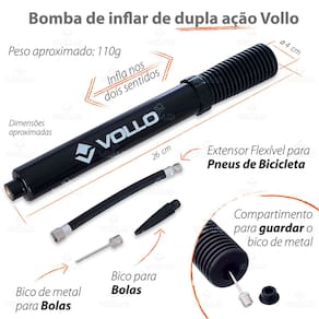 A Bomba de Inflar de Dupla Ação da Vollo é aquele produto coringa 3 em 1, ideal para encher e inflar todos os tipos de bolas, pneus de bicicletas e infláveis.
