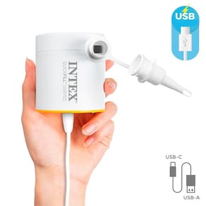 A Bomba de Ar Elétrica QuickFill é a companheira ideal para quem busca praticidade na hora de encher pequenos infláveis. Com design compacto, peso leve e alimentação via cabo USB (incluso), ele é perfeito para levar na mochila, mala ou até no carro ? sem ocupar espaço! Ele vem com 2 bicos adaptadores, compatíveis com a maioria das válvulas, além de uma bolsa de tecido para transporte, garantindo organização e proteção. Com capacidade de 150 litros por minuto, é ideal para inflar colchões de camping, boias, flutuadores e outros infláveis de pequeno porte de forma rápida e sem esforço.