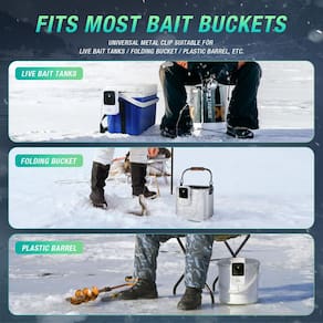 Ghosthorn Aerador recarregável silencioso de modo duplo para peixes, bomba de ar de aquário de grande capacidade com clipe universal para a maioria dos baldes de isca de 8000 mAh