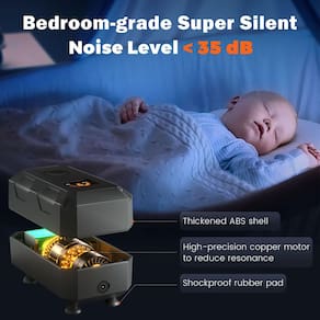-?Redução de ruído ultrassilenciosa e em vários estágios?Com ruído inferior a 35 dB, a bomba de ar silenciosa do aquário elimina suas preocupações com ruídos. Em primeiro lugar, ele usa isolamento acústico de camada dupla para reduzir vibrações e ruídos. Em segundo lugar, um motor de cobre de alta precisão minimiza os ruídos. Finalmente, oito almofadas antiderrapantes garantem a estabilidade e reduzem melhor os ruídos. Mesmo usada em um quarto, a bomba de ar do aquário pode garantir um sono profundo para você e sua família.