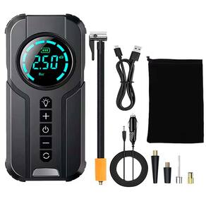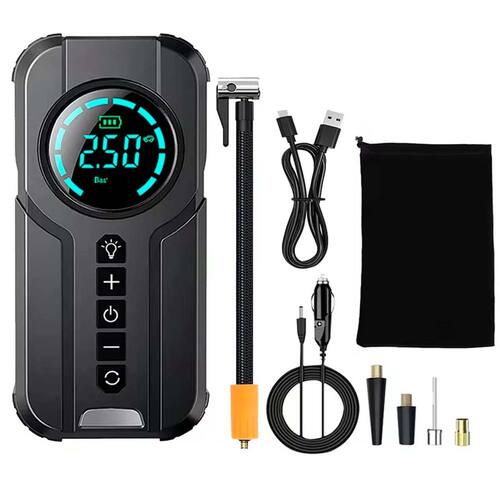 Conteúdo da embalagem: 1x Inflador portátil 1x Carregador veicular 12V 1x Cabo USB Tipo C 1x Bolsa de armazenamento 1x Tubo de ar 1x Adaptador de válvula padrão 1x Adaptador de válvula agulha 1x Adaptador para boias e anéis de natação 1x Adaptador para bote de borracha