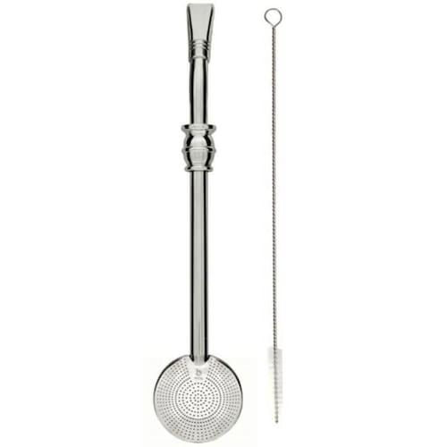 Garantia: 90 Dias / Peso: 66g / Cor predominante: Inox / Ref: 7898644785802; Dimensões: 3cm (C) x 1cm (L) x 19cm (A); Comprimento do bocal: 1,2cm; Diâmetro do bojo: 3cm; Dimensões da escovinha: 1cm (L) x 21cm (A); Materiais: aço inox 304 (bomba), metal e nylon (escovinha); Bomba com bojo rosca, removível para melhor higienizar; Conteúdo: 1 bomba de chimarrão e 1 escovinha de higienização.