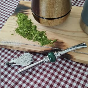 A bomba possui uma linda pedra ágata, a bomba de chimarrão também pode ser utilizada para tererê, conta também com o bojo removível de rosquear para facilitar no momento da limpeza da bomba. O chimarrão se tornou indispensável no dia a dia, e a bomba do chimarrão cada vez mais linda e elaborada para facilitar em todos os momentos. A Taumer lançou a nova linha de bombas para chimarrão a Suprema, que possui uma linda pedra ágata redonda tornando a peça mais sofisticada e elaborada com detalhes encantadores. A bomba de chimarrão pode ser utilizada para tererê, conta também com bojo pera removível de rosquear, e uma escova para facilitar no momento da limpeza.