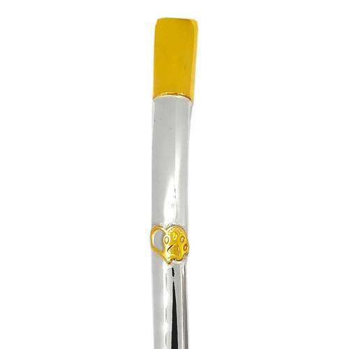 Descrição: Cano liso, detalhe coração e patinha em ouro.