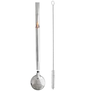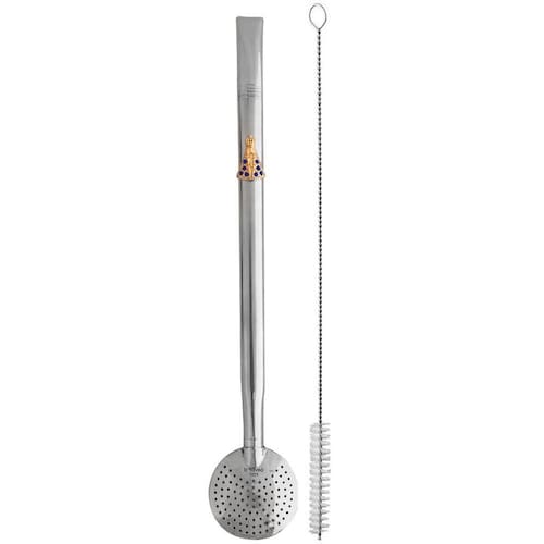 Desfrute seu chimarrão com qualidade, sabor e tradição! #Bomba para Chimarrão #Bomba com Pingente #Aço Inox Garantia: 10 anos / Peso: 80g / Cor: Inox / Ref: 1046E01 Dimensões: 4cm (C) x 1cm (L) x 23cm (A) Cuidados: Não lavar com materiais abrasivos. Bomba: Com rosca. Dimensões do Bocal: 8mm Acompanha: Escovinha de higienização. Dimensões Escova: 0,5cm (C) x 1cm (L) x 25cm (A) Pingentes: - Gato; - Casal; - Laçador; - Nossa Senhora; - Eu Sou do Sul; - Cuia; - Cachorro; - Mapa do Rio Grande do Sul; - Brasão; - Cabeça de Cavalo. Material: - Aço inox 304: Material de alta resistência, não enferruja, não transfere odor e nem gosto. Deixe seu chimarrão mais bonito e com estilo usando uma bomba com pingente. Esta bomba com 23cm, é imponente e luxuosa, fabricada em aço inox 304, material altamente durável e resistente, que não transmite odor ou gosto. Com bojo redondo tradicional com rosca que possibilita desmonta a bomba facilitando a limpeza, acompanha escovinha de higienização.