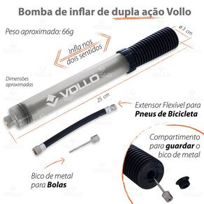 Bomba de Inflar Dupla Ação Extensor Bolas Bicicletas Bico Metal Durável Vollo - Transparente