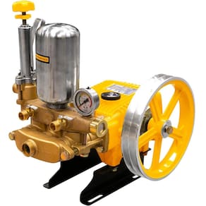 Conta com três pistões em inox e virabrequim (sistema tríplex), cabeçotes de ferro fundido de grande resistência e comando by-pass com sistema de circulação. Possui manômetro que permite a regulagem e visualização da pressão conforme a necessidade. É equipada com duas torneiras de saída de 1/2" independentes, que permitem o uso de dois esguichos ao mesmo tempo, e uma saída opcional de 1". Conta com uma câmara de compensação em aço inoxidável que controla as oscilações de pressão nos sistema de pulverização e diminui a vibração nas mangueiras. Indicada para uso agrícola, seja na pulverização de defensivos químicos ou para a montagem de lavadoras para limpeza de estábulos, granjas, veículos, entre outros. Permite acionamento por motores elétricos ou motores a combustão.