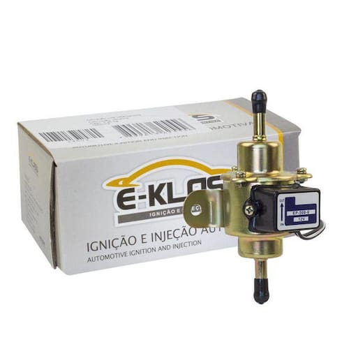 Bomba de combustível universal carros carburados gasolina Informações para instalação A bomba mecanica pode ser substituida pela bomba eletrica , para isso basta retirar a mangueira que alimenta a bomba mecanica , acoplar a bomba eletrica ligando o fio positivo após chave e o negativo a massa do carro de acordo com o desenho abaixo Lembrando que o correto é instalar ao nivel do tanque , após instalar a bomba elétrica recomenda-se cortar a haste da bomba mecanica aliviando o peso do motor , a mangueira deve estar isenta de impurezas ou emendasFiat:Uno147FiorinoElbaPrêmioFord:CorcelDel reyEscortPampaMaverickJeepBelinaLandauGmOpalaCaravanKadettMonzaChevetteChevyC10BrazincaVaraneoMarajóVw:PassatFuscaKombiBrasiliaGolSantanaParatiSaveiroVoyageTlVariantMáquina agrícolas com carburadorMotores de barcoObs: substitui a bomba mecânica utilizada em veículos carburadosTensão: 12 voltsPressão: 0,3 a 0,5 barVazão: 115 l/hTipo: externaEngate da mangueira: 8mmComprimento cabo: 410mm2 fiosCódigo Fabricante: EBC1087