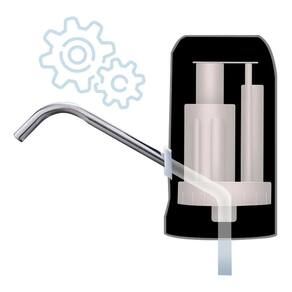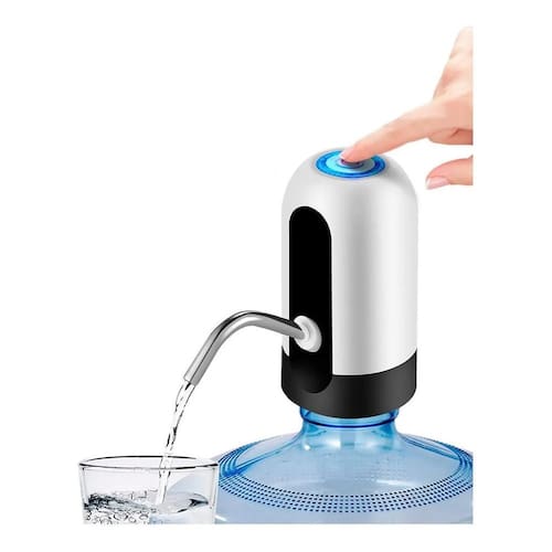 Bomba elétrica automática para galão de água, USB Bivolt, mangueira de inox, mangueira puxadora de água, cabo USB e manual de instalação. Composição em aço inox e plástico.Compatível com