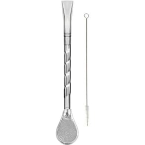 Bomba Inox para Chimarrão Bojo Mil Furos com Rosca Pera 19cm para Mate Tererê.