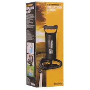 Inflador air hammer manual pump Volume do curso: 0,85l por ciclo Câmera de ar grande para rápida inflação Se infla subindo e abaixando Mangueira flexível e material plástico. 3 bicos adaptadores de válvula Ean: 6942138917796