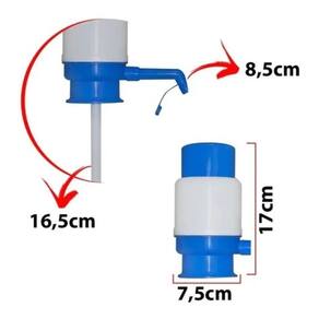 Bomba manual para galão de água mineral de 10 ou 20 litros. Encaixe sem necessidade de virar o galão. Acionamento por botão superior. Bico com sistema anti-respingo. Vedação completa sem vazamentos. Lavável e de fácil instalação. Não necessita de pilhas ou carregadores.Água gelada