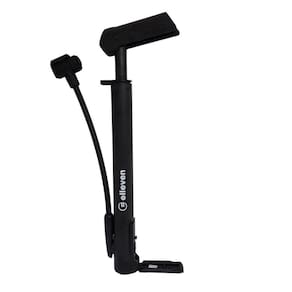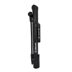 Modelo: Mini com Mangueira Bico: Reversível no bico - Presta (Fina) e Schareder (Grossa) Barril: Nylon Extra Ligth Estrutura Externa: Plástico Possui cabo em "T" para maior ergonomia e sistema de mangueira giratória para facilitar a calibragem Manômetro: Não possui Pressão de Calibragem: 120 PSI Comprimento: 27,9cm Acompanha Suporte de Fixação na Bike: Sim Cor: Preto Peso Aprox.: 170g Marca: Elleven