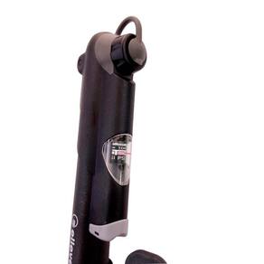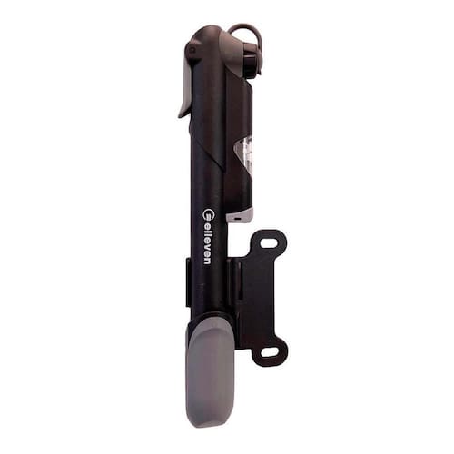 Colocar a bomba na válvula e acionar a trava. Posicionar-se em ângulo favorável para inflar a câmara e bombear até o pneu ficar completamente cheio. Verificar a pressão máxima do pneu e acompanhar no manômetro. Pressão Máxima de 120 PSI Ponteira reversível Presta e Schrader Acompanha suporte para transporte no quadro Comprimento Aprox.: 22cm Telescópica Manômetro indicador da pressão segurança e precisão Possui trava para evitar vazamento no inflar Peso Aprox.: 160g Material: Nylon e Alumínio Marca: Elleven