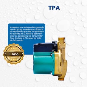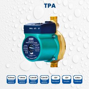 Sistema de Pressurização: Pressurização através de pressostatos e inversores de frequência. Ambiente Principal: Jardim e Varanda Composição: Carcaça em Bronze. Rotor em Termoplástico. Anel O´ring de vedação da carcaça e juntas em Buna N. Comprimento: 13 cm Consumo aproximado de energia: 0,15 kW/h Diâmetro de Entrada: 0,75 in Diâmetro de Saída: 0,75 in Ergonômico: Não Indicado para: Residências, Indústrias, Comércios Itens Inclusos: Acompanha Itens Adicionais (1 Chave, 2 Adaptadores de Rosca e 2 Juntas de Vedação) Largura: 10,3 cm Manual de Montagem e Instalação: https://product-hub-prd.madeiramadeira.com.br/965340/documents/d89ac79f-dd06-49d9-b151-f0b4cf24563fb2419686578317279818539967.pdf Marca: EBARA Material Principal: Cobre Modelo: Bomba Monoestágio Tpa 15-9-160(b) Monofásico Motor Thebe 120w 127v Necessita Montagem: Não Origem do Produto: Nacional Peso: 3 kg Possui Fluxostato: Sim Possui Protetor Térmico: Sim Potência do motor: 0,16 HP Recomendações de Uso, Manutenção e Limpeza: Verifique nosso manual de Manutenção Rolamento Blindado: Sim Temperatura Máxima da Água: 90 ° Tipo de Mecanismo: Não se Aplica Vazão Máxima de Água: 3,4 m³/hora Vazão Mínima de Água: 0,3 m³/hora Voltagem: 127V