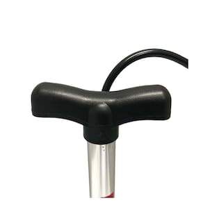 Tamanho: 320 mm Cabo em formato t &150; melhor empunhadura Possui alça de apoio para o pé &150; mais firmeza ao inflar Mangueira do ar de plástico de 50 cm Válvula da bomba com trava de bico , facilita o encaixe no bico válvula/americana Peso: 240 g