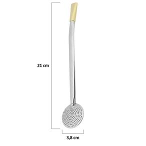 Bomba Promate para chimarrão fabricada em Aço Inox, possui cano chato, bojo redondo e biqueira dourada.