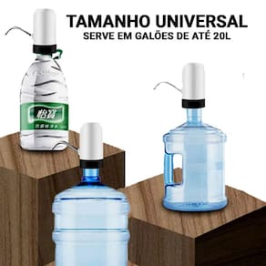 Bomba elétrica automática recarregável via USB para galões de água. Possui desligamento automático, corpo resistente e botão superior para facilitar a aplicação. Limpa e higiênica, não escorre o produto.Tipo