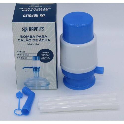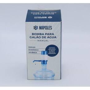 Bomba para galão de água manual- napoles Nome: suporte para galão de água manual Marca: napoles Referência: na297 Código de barra: 7896548154526 Dimensão: 9cm x 9cm x 17cm Peso: 0.139kg Composição: plástico