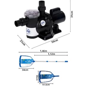 Manutenção Completa da Piscina: Conjunto ideal para filtrar e limpar a piscina, cuidando tanto da circulação da água quanto da remoção manual de resíduos.