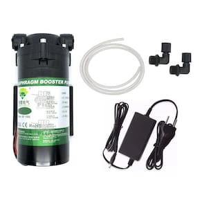Bomba pressurizadora para purificadores de osmose reversa 75GPD, bivolt, com conectores e mangueira. Ideal para pressão hidráulica inferior a 2,5 kgf/cm2.