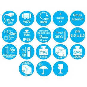 Para poços a partir de 3.Indicada para bombeamento de águas subterrâneas, irrigação abastecimento de cisternas e diversas aplicações.Não indicada para água com sólidos em suspensão. Acompanha Caixa de Comando.Utilizações