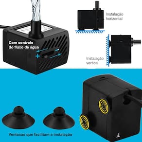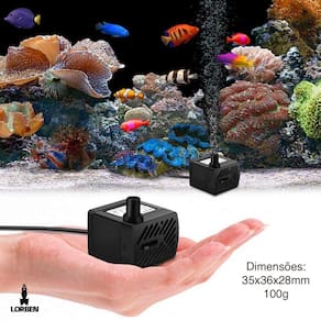 POTÊNCIA: 3WA Bomba Submersa Lorben foi projetada para uso em aquários, bebedouros para pets, fontes decorativas, cascatas, etc. Seu tamanho é compacto e leve, além de possuir funcionamento silencioso e seguro, sem gerar bolhas de ar e com baixíssimo consumo de energia.[OBS.] Para evitar que ela se queime, é importante que você mantenha a bomba sempre dentro da água.A Bomba Submersa é uma ótima escolha para projetos de aquário, pois oferece desempenho superior, durabilidade e segurança, além de ser muito fácil de instalar e manter.Fabricada em plástico ABS, é resistente à abrasão e pode ser utilizada tanto em aquários de água doce quanto salgada, fontes e bebedouros pet além de cultivos hidropônicos e pequenas cascatas.O motor selado à prova de água (nível de proteção IP-X8) oferece alto desempenho. Possui controle de vazão de água, permitindo que a bomba seja usada para circulação de água e oxigenação, garantindo segurança e eficácia. Além disso, as ventosas de alta resistência facilitam a sua fixação em locais discretos, na vertical ou horizontal, sem comprometer a estética do aquário.Marca: LorbenMaterial: Plástico ABS e componentes eletrônicosCor: PretoModelo: DH-180Potência: 3WVoltagem: 110V/220V BivoltFrequência: 50/60HzElevação máxima: 55cmVazão máxima: 180 L/hNível de proteção: IP-X8Inclui:1 Bomba submersa para fontes e aquáriosDimensões do produto: 35x36x28mmComprimento do cabo de energia: 139cmPeso do produto: 100gTamanho da embalagem: 8x8x5,5cmPeso da embalagem: 150gCódigo do produto: GT6080Imagens ilustrativas. As tonalidades podem variar.