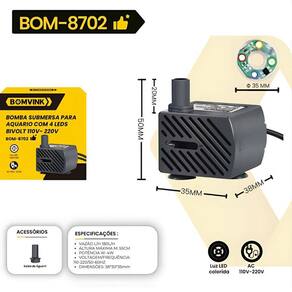 - Ideal para aquários que precisam de circulação de água e fontes pequenas