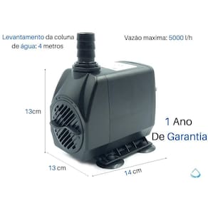 Bomba Submersa Para Lagos Aquários Fontes 5000 Lh Wfish 110V Bomba submersa WF 5000 litros hora 110V com controle de vazão manual. Essa bomba foi desenvolvida para trabalhar constantemente em seu aquário. Silenciosa e eficaz, a bomba produz movimentação de água, 5000 litros/hora, com baixo consumo de energia elétrica, apenas 100 watts. Como em todas as bombas, os componentes elétricos são totalmente imersos em resina epóxi tornando-as seguras contra choque elétrico mesmo trabalhando continuamente submersas. Seja ela de água salgada ou doce, fonte, chafariz, cascatas tanques ou até em lagos ornamentais. Sistema hidropônico, sistema de irrigação e uso geral de bombas de água. Motor confiável e de baixo ruído. Completamente submersível. Opção para eixo de aço ou cerâmica sem esforço. O pré-filtro requer menos manutenção. Possui regulagem de vazão da água. CARACTERISTICA - Altura máxima: 4 metros -vazão: 5000 litros hora - consumo de energia: 100W - voltagem: 110v - 1 Ano Marca: Não Informado