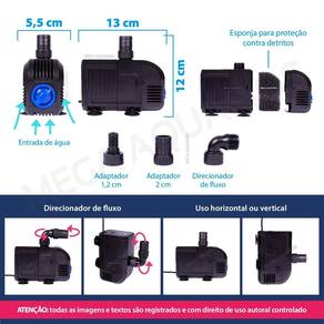 Aplicação: Circulação de água em aquários Circulação de água em lagos / laguinhos Elevar água do sump para aquário Direcionar água para sump Direcionar água para filtro tipo cânister ou filtro UV ultravioleta Fontes de água / chafariz / cascata com até 1.8m de altura Hidroponia