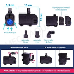 Bombinha dágua submersa blindada de baixo consumo de energia, design compacto, auxilia na oxigenação e na circulação da água. Preparada para ficar ligada constantemente. Ela é totalmente vedada, o que a torna segura para danos elétricos em contato com a água.