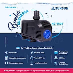 Motor bomba submersa Sunsun HJ-5500 6000L/h 100W eleva água até 4m para aquário, lago, cascatas, chafariz e fontes de água