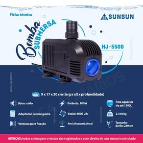 Bomba Submersa Sunsun Hj-5500 6000Lh Aquário 1200L - 110V