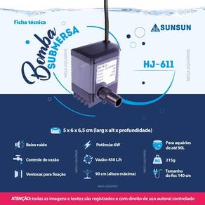 Bomba Submersa Sunsun Hj-611 450Lh Aquário 90L - 220V