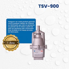 Residencial: Abastecimento de Reservatórios/caixas d'água, cisternas, pressurização de jardins. Acompanha bóia elétrica: Não Acompanha válvula de retenção: Não Altura: 30 cm Altura manométrica total: 70 mca Ambiente Principal: Jardim e Varanda Composição: Acompanha 3 metros de cabo e Kit de Instalação (3 abraçadeiras e curva suporte). Diâmetro de 165mm. Carcaça em alumínio. Parafusos de fixação em aço inox (não enferrujam). Comprimento: 18 cm Conexão de entrada/saída: Bocal de Recalque para mangueira de 1" Ergonômico: Não Funcionamento: Elétrica Itens Inclusos: Bomba Submersa Vibratória Tsv-900 220v Largura: 18 cm Manual de Montagem e Instalação: https://product-hub-prd.madeiramadeira.com.br/956266/documents/66d3db13-7309-40fc-8290-286c1fe78c8024173355783172789206519.pdf Material Principal: Alumínio Modelo: Bomba Submersa Vibratória Tsv-900 0,60 Cv Monofásico Motor Thebe Ip68 220v Necessita Montagem: Não Origem do Produto: Nacional Peso: 5,3 kg Potência do motor: 0,6 HP Profundidade de sucção: 70 m Recomendações de Uso, Manutenção e Limpeza: Verifique nosso Manual de Manutenção Temperatura Máxima da Água: 35 °C Tipo de bomba de água: Submersível Vazão máxima: 2.300 L/h Voltagem: 220V