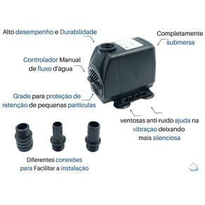 Essa bomba foi desenvolvida para trabalhar constantemente em seu aquário. Silenciosa e eficaz,a bomba produz movimentação de água, 2000 litros/hora, com baixo consumo de energia elétrica, apenas 30 watts. Como em todas as bombas, os componentes elétricos são totalmente imersos em resina epóxi tornando-as seguras contra choque elétrico mesmo trabalhando continuamente submersas. Seja ela de água salgada ou doce, fonte, chafariz, cascatas tanques ou até em lagos ornamentais.