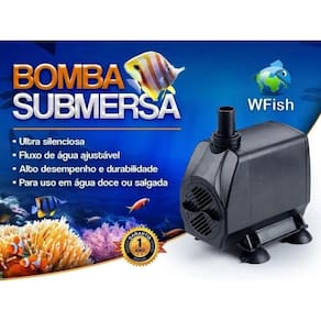 Bomba submersa wf-2000 wfish 2000l/h 127v A bomba foi equipada com um controle de fluxo suave, o que permite ser adaptada a várias tarefas, tais como: cachoeiras no terrário, circulação de água no nano recife, alimentação de recarga automática, criação de fonte em lago, etc. Indicações/recomendações: antes de manusear o equipamento, sempre desconecte da tomada pois o cabo de alimentação não pode ser substituído, se for danificado não há conserto. Não deixe a bomba trabalhar sem água. Realize a limpeza regularmente pois a sujeira impede o bom funcionamento, se a bomba for usada próxima ao substrato, levante-a levemente para reduzir a quantidade de detritos que tenham contato com a entrada. Não utilize em temperatura acima de 35c. -voltagem: 110v - ultra silenciosa- fluxo de água ajustável- alto desempenho e durabilidade- para uso em água doce ou salgada - consumo de energia: 35w- eficiência: 2000l / h- levantamento da coluna de água: 2,2m- dimensões 9 x 5,9 x 6,8 cm