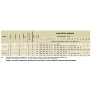 Bomba Submersível BCS-220 3Cv Trifásica Schneider Descrição As bombas submersíveis Schneider foram projetadas com o direcionamento focado em relação ao design, utilização prática, mobilidade e segurança quanto estão funcionando. As bombas submersíveis foram criadas para atender as demandas crescentes do mercado de drenagem. Aplicações Gerais Drenagem de águas servidas e pluviais Rebaixamento de lençol freático Bombeamento de efluentes não fibrosos Indústrias Estações de tratamento de esgoto (BCS-350) Limpeza de caixas d?água (BCS-C5) Especificações Bocais com rosca BSP Placa de fundo de ferro fundido GG-15 Selo mecânico constituído de aço inox AISI-304, buna N, grafite e cerâmica Motor elétrico IP-68, 2 polos, 60 Hz, eixo de aço inox AISI-316 (BCS-C5, BCS-205, BCS-305, BCS-220, BCS-320) Motor elétrico IP-68, 4 polos, 60 Hz, eixo de aço inox AISI-316 (BCS-350) Comprimento do cabo de ligação: 3,5 m BCS-220 Caracol: ferro fundido nodular Rotor: ferro fundido nodular Placa de fundo: ferro fundido nodular Selo mecânico: buna N carbeto de silício Modelo: BCS-220 -Potência: 3 CV -Ø Máximo de Sólidos: 20 -Ø Recalque: 2 Pol Pressão máxima sem vazão (mca): 27 Rotor: 127 mm -Peso: 33 kg -Dimensão: L X A X C (cm) 21 x 50 x 26 cm Importante Vedada a utilização para bombeamento de água potável. Não manuseie a bomba com o motor ligado: perigo de choque elétrico. Temperatura máxima do líquido bombeado: 40 °C. Motor refrigerado com óleo dielétrico. Instale a BCS de forma que o motor elétrico trabalhe completamente submerso. Para bombeamento de água com material abrasivo, consulte a Fábrica para especificação dos materiais. Consulte o Manual de Instrução para outros cuidados operacionais. Itens Inclusos 01 Bomba submersível Schneider BCS-220 2 Polos 3 CV trifásica Formas de Pagamento - Mercado Pago - Pagseguro - TrayCheckout Prazo de Entrega Até 10 dias uteis Garantia Garantia de fábrica de 18 meses Se tiver dúvidas, por favor, pergunte! Responderemos rapidamente.