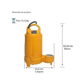 Indicada para bombeamento de esgoto e efluentes, com sólidos em suspensão no diâmetro máximo de 2cm;