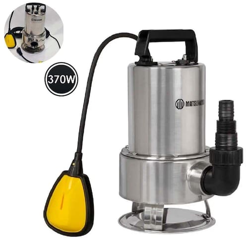 BOMBA SUBMERSÍVEL INOX 1/2 HP 750W 9804 MATSUYAMACARACTERÍSTICAS:Ideal para cisternas, irrigações, construção civil, manutenção de piscinas, limpezas de caixa d'água, drenagem de águas servidas e pluviais entre outras atividades que necessitem esgotamento e/ou transferência de água.Produto de fácil manuseio e instalação.ESPECIFICAÇÕES:- Marca: MATSUYAMA- Referência: 980412 - 110V / 980420 - 220V- Categoria: Bomba Submersível- Tensão de saída: 127V~ OU 220V~- Potência: 1/2 HP - 370 W- Frequência: 60 Hz- Diâmetro das conexões de saída: 1" - 1.1/4" - 1.1/2"- Altura máxima: 5 M- Vazão: 133 L/Min- Profundidade máxima: 5 M- Admissão de sólidos: 0 35 mm- Rotação máxima: 3.600 - 127V / 2.850 - 220V RPM- Lamina mínima de água admissível: 100 mm - 127V / 220V- Peso: 4,15Kg - 127V / 3,84 Kg - 220V- Dimensões (C X L X A): 19 x 17 x 32 cmIMAGEM MERAMENTE ILUSTRATIVA