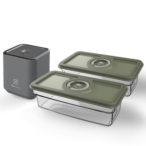 Bomba Vácuo com 02 Potes em Poliamida e Acrílico - Electrolux Você procura uma maneira prática e eficiente de conservar seus alimentos por mais tempo? A Bomba Vácuo com 02 Potes em Poliamida e Acrílico da Electrolux é a solução perfeita para isso! Características Tipo: Kit bomba vácuo e potes Quantidade: 02 Especificações Técnicas Modelo: 41046451 Material: Poliamida/Acrílico Cor: Verde/Transparente Garantia: 03 meses Dimensões e Peso Dimensões do Produto sem Embalagem (AxLxP): 227x75x121 mm Dimensões do Produto com Embalagem (AxLxP): 137x337x169 mm Peso do Produto sem Embalagem: 1,16 Kg Peso do Produto com Embalagem: 1,38 Kg Itens Inclusos 01 Bomba a Vácuo 02 Potes