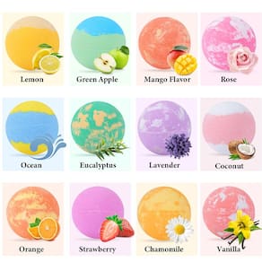 SANTRELA Bombas de banho com brinquedo surpresa no interior – Existem 12 brinquedos surpresa diferentes em cada bola de bomba, que serão revelados quando os brinquedos estiverem prontos! - Estas bombas de banho são colorantes, mas não vão manchar sua banheira ou pele. 12 aromas exclusivamente trabalhados: Manga – humor claro, Laranja doce – Sensação boa, Baunilha – Refresque o cérebro, Oceano – Aproveite a vida, Morango – Bom dia, Maçã verde – remove o cansaço, Lavanda – desenrola a mente, Camomila – hálito livre, Eucalipto – Acalma os músculos, Rosa – Sweet Dreams, Limão – A Good Heart, Coco. Aproveite todos os dias. Bolhas coloridas e brilhantes, cheiros encantadores e brinquedos surpresa podem ajudar seus filhos a se apaixonar pelo banho. Os ingredientes calmantes na bomba de banho podem relaxar seus filhos, adequado para crianças com mais de 3 anos de idade Livre de crueldade e humano: Nunca experimentaremos animais – não precisamos porque nada tóxico ou prejudicial entrará em nossos produtos. - ?BOMBAS DE BANHO COM SURPRESA INTERNA ?Existem diferentes brinquedos surpresa em cada bola bomba, que serão revelados quando os brinquedos assobiarem! Hora do banho misteriosa e surpreendente, faça seu filho se apaixonar pelo banho. - ?12 sabores diferentes?Jogue uma bomba de banho infantil na água e observe-a assobiar, criando cores mágicas. Pacote com 12 aromas: oceano, eucalipto, manga, maçã verde, laranja doce, lavanda, limão, baunilha, morango, camomila, rosa, coco. - ?Ingredientes 100% seguros?Feito com ingredientes seguros e suaves para garantir que sejam seguros para crianças e manter sua pele hidratada. A cor engraçada não deixa manchas ao redor da banheira e é fácil de limpar. Sem manchas na banheira. - ?Aproveite a hora do banho divertido?Bolhas coloridas e brilhantes, cheiros encantadores e brinquedos surpresa podem ajudar seus filhos a se apaixonarem pelo banho. Os ingredientes calmantes na bomba de banho podem relaxar seus filhos, adequados para crianças com mais de 3 anos de idade. - ?Ideal para presente: nossos conjuntos de presentes de banho e trabalho corporal usam ingredientes da melhor qualidade, portanto, sinta-se à vontade para usá-los. O lindo conjunto de presente é perfeito para aniversários, Natal e ovos de Páscoa, presentes de festa e outras ocasiões, perfeito para meninos e meninas.