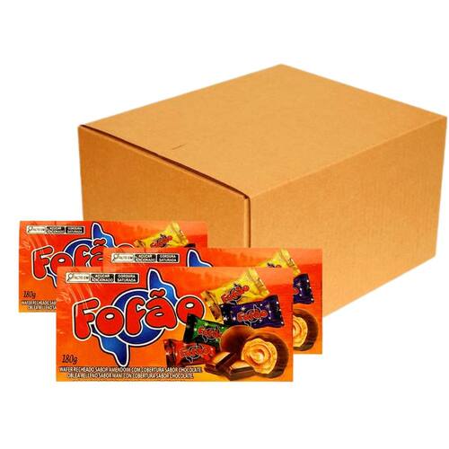 Kit com 10 Caixas de wafer recheado Fofão sabor amendoim com cobertura sabor chocolate com 180 gramas cada.