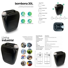 Bombona 20 litros reciclada preta com tampa lacre branca e alça incorporada Nesta compra você vai receber: 01 x bombona pretas 20 litros com tampa lacre branca Importante: Este produto é fabricado com material reciclado e não é indicado para o envase de alimentos ou líquidos para consumo humano. A bombona de 20 litros reciclada preta da nastripack é a escolha inteligente para quem busca economia, durabilidade e consciência ambiental, agora com todas as informações técnicas que você precisa. Fabricada com plástico reciclado pead de alta qualidade, esta bombona oferece uma solução robusta e versátil para suas necessidades de armazenamento e transporte. Com sua cor preta, a bombona garante maior proteção contra a luz para conteúdos sensíveis, além de um visual discreto e para diversos ambientes industriais e comerciais. O bocal de rosca 63mm - autolacrável com disco vedante assegura um fechamento firme e à prova de vazamentos, protegendo o conteúdo e facilitando o manuseio e o reuso. Características principais: Capacidade: 20 litros, ideal para uso doméstico, industrial e comercial. Cor preta: protege o conteúdo contra a luz, ideal para líquidos sensíveis. Material reciclado resistente: alta durabilidade e resistência a impactos. Tampa com fechamento seguro, evitando vazamentos e contaminação. Design prático e fácil de transportar. Capacidade e dimensões: Capacidade volumétrica nominal: 20 l Capacidade volumétrica total of : 21,8 l Dimensões altura. X largura. X comprimento : 388 x 240 x287 mm Gramatura utilizada: 900 grs +/- 30g É ideal para envasar e armazenar: Água para fins não potáveis jardinagem, limpeza, construção Detergentes e produtos de limpeza Lubrificantes e óleos industriais Insumos agrícolas Outros líquidos e granulados verificar compatibilidade Vantagens da bombona 20 litros reciclada preta nastripack: Econômica: ótimo custo-benefício. Sustentável: reduz o impacto ambiental. Resistente: feita para durar e suportar o uso diário, com gramatura de 1000g. Vedação superior: bocal com rosca autolacrável e disco vedante. Versátil: ideal para diversas aplicações não alimentícias. Versatilidade de aplicações: o que a bombona 20 litros pode envasar A bombona 20 litros reciclada preta da nastripack é uma solução excepcionalmente versátil para diversos segmentos. Suas principais aplicações incluem: Indústria de limpeza e higiene: ideal para concentrados de detergentes industriais, desinfetantes de uso geral, amaciantes, sabão líquido para lavanderias profissionais, produtos para limpeza automotiva e saneantes para grandes ambientes. Setor industrial: armazenamento e transporte de óleos lubrificantes, fluidos hidráulicos, aditivos para máquinas, ceras, colas compatíveis com pead , emulsões e outros insumos não alimentícios. Agricultura e jardinagem: perfeita para fertilizantes líquidos solúveis em água, verificar compatibilidade , com as devidas precauções de segurança , e água para irrigação de pequenos cultivos ou canteiros. Construção civil: transporte de água para misturas de argamassa, aditivos para cimento, ou para a lavagem de ferramentas e equipamentos no canteiro de obras. Uso geral e coleta: excelente para coletar e transportar água da chuva, óleos cozinha ou motor , resíduos líquidos não perigosos para descarte adequado, ou como recipiente para armazenamento de ferramentas e pequenos objetos. Importante: Este produto é fabricado com material reciclado e não é indicado para o envase de alimentos ou líquidos para consumo humano. Trata-se de um produto plástico, sendo essencial transportar e armazenar em local fresco e ventilado, longe de calor, poeira e raios solares para garantir sua durabilidade e integridade. Invista na bombona 20 litros reciclada preta da nastripack e combine praticidade, economia e respeito ao meio ambiente em um só produto Bombona preta,bombona nastripack,bombona preta nastripack,bombona preta 20l