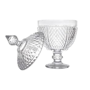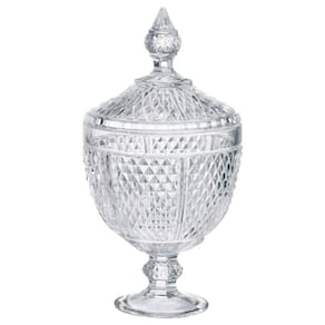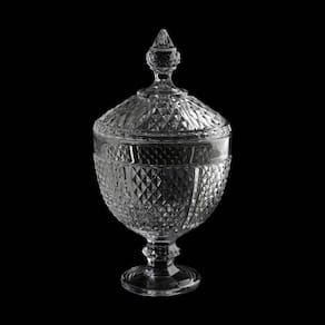 Pote Bomboniere de Cristal com Pé Perseu 28,5x15cm Lyor As bombonieres com tampa são modelos clássicos e muito versáteis, já que podem ser colocados em diferentes ambientes, sempre oferecendo aquele toque de descontração e sabor que somente um refratário com doces pode garantir. A Bomboniere Perseu da Lyor foi pensada exatamente pra deixar seu ambiente mais doce e dar um charme na sua decoração. - Material: Cristal. - Medidas (Axø): 28,5cm x ø15cm. - Peso unitário: 1,455kg. - Tamanho da embalagem (AxLxP): 21cm x 15,5cm x 15,5cm.