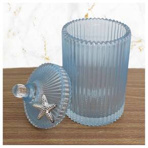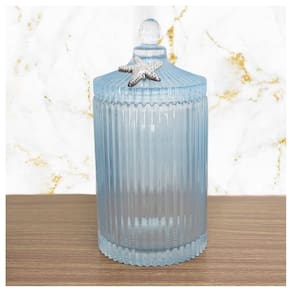 Bomboniere De Vidro Grosso Azul Com Detalhe Em Metal 22cm -