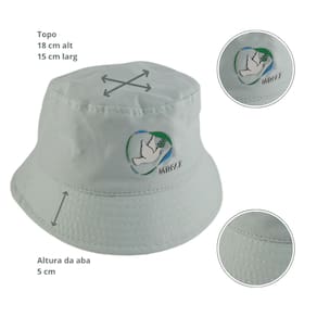 - Frente altura 8 cm - Aba altura 5 cm - Aba completa 75 cm - Topo 18 cm alt x 15 cm larg - Circunferência Padrão 60 cm